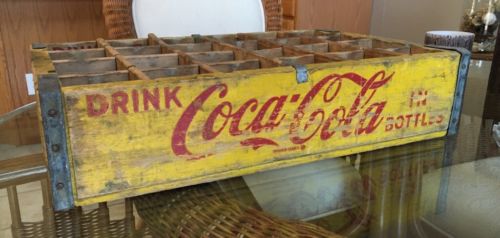 Title (ebay affiliate link): Vintage Wooden Yellow Coca-Cola Coke Soda Pop Bottle Crate Carrier Wood Box