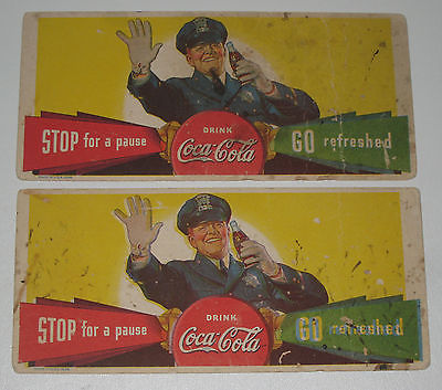 Lot of 2 Vintage 1938 Coca Cola Stop & Go Advertising Signs HM21