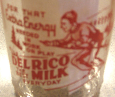 Vintage Del Rico Milk 1/2 Pt Cream Bottle Red Skier
