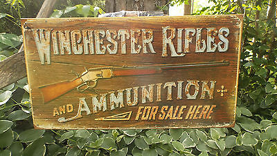 WINCHESTER RIFLES TIN METAL ADVERTISING HUNTING CABIN COLLECTIBLE SIGN