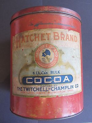 Title (ebay affiliate link): Vtg Hatchet Brand 6 lb Red Tin Can COCOA Mountain View Hotel Maine