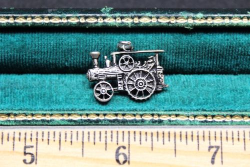 Old Vintage Steam Engine Tractor Farm Equipment Sterling Silver Charm Pendant