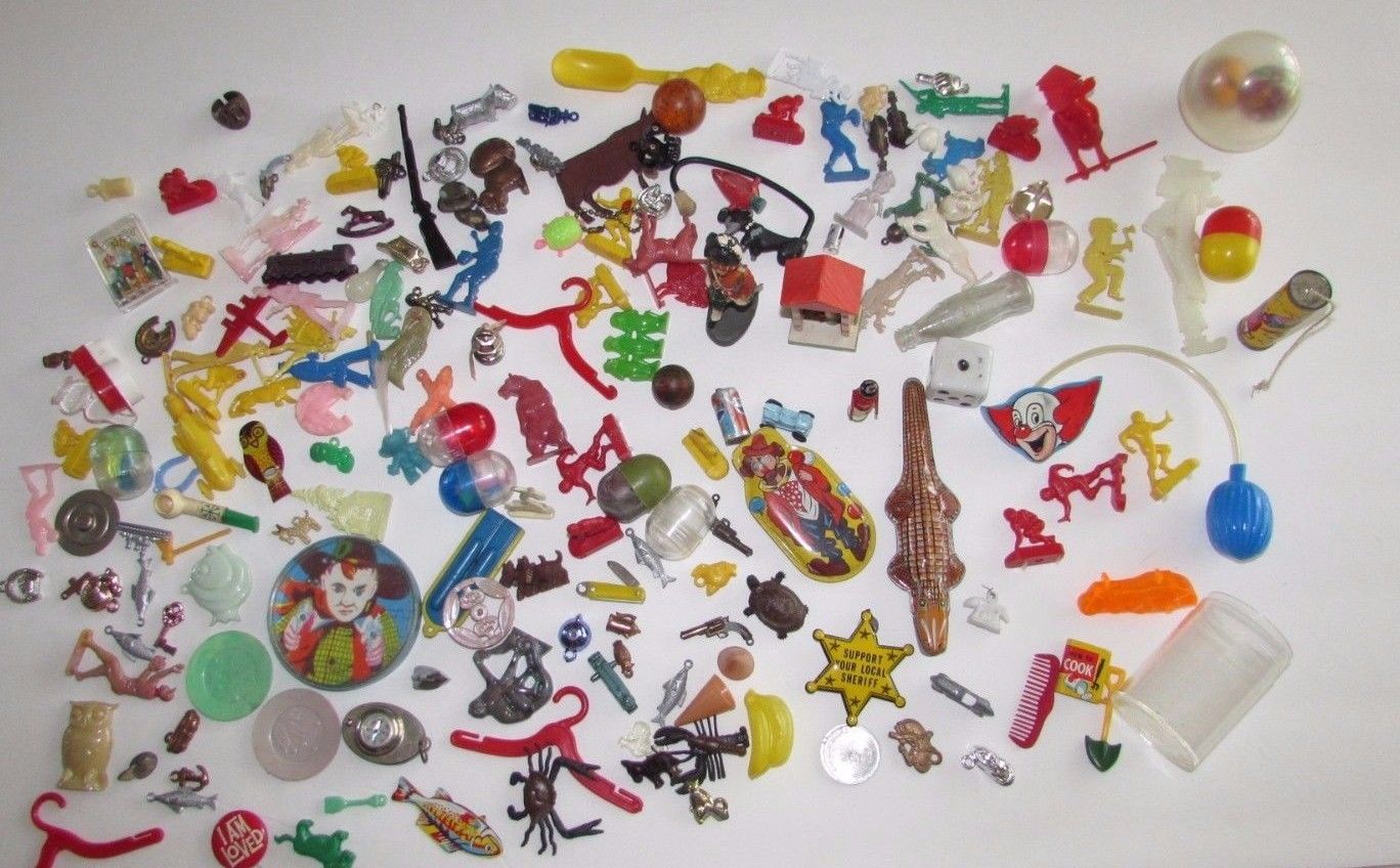 Title (ebay affiliate link): Lot Vtg Cracker Jack Toys Tin Clicker Mini Prizes Games etc