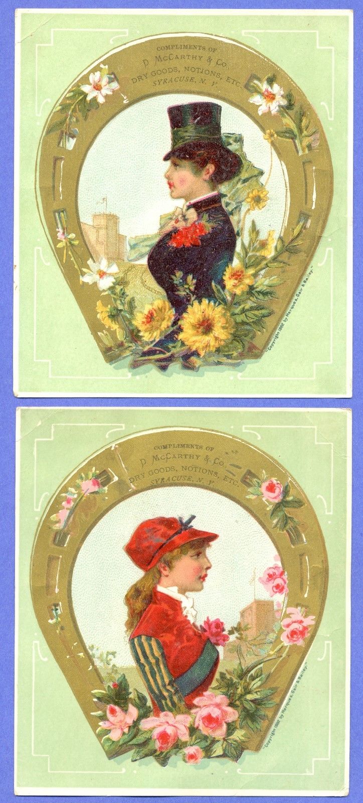 Vintage 1882 Victorian Trade Card Lot of 2 - D. McCarthy & Co. Dry Goods,Notions
