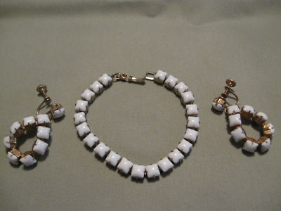 VINTAGE MILK GLASS BRACELET & SB EARRINGS SET (L978)