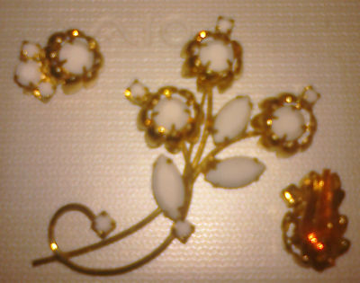 Earrings and Brooch Pin Set Milk Glass