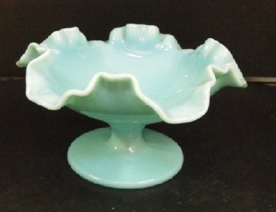 Fenton turquoise milk glass compote