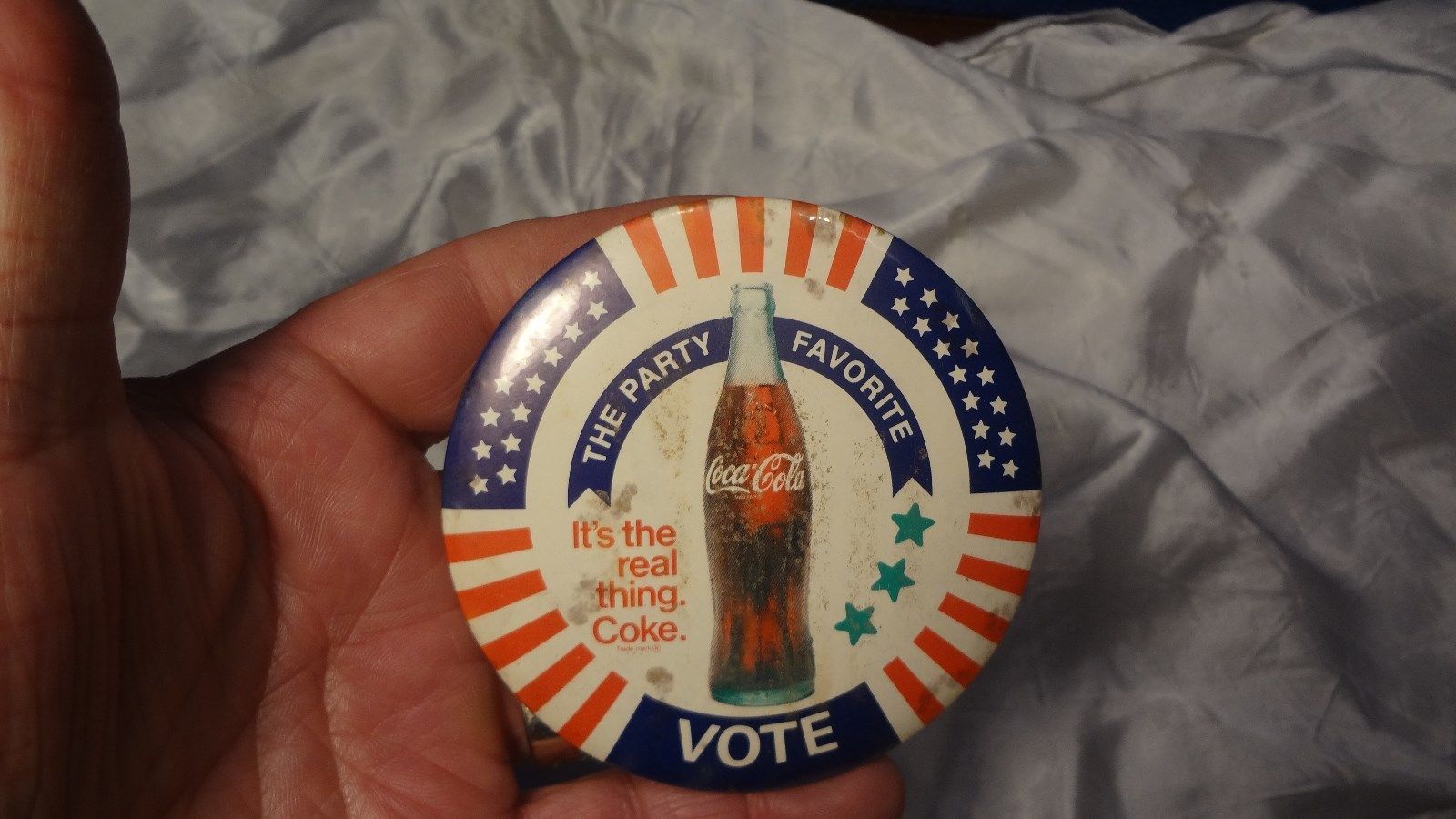 Title (ebay affiliate link): **COCA COLA** Vintage Advertising Coke *POLITICAL BUTTON PIN PINBACK*