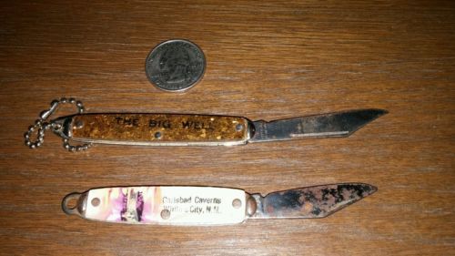 Title (ebay affiliate link): 2- VINTAGE SMALL KEY CHAIN/ADVERTISING POCKET KNIVES