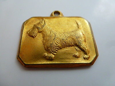 Vintage Original Rothmoor Coats Scottie Dog Gold Tone Metal Coat Fob Tag Charm
