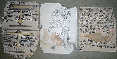 INDIA VERY OLD INTERESTING 3 SANSKRIT MANUSCRIPT PAPERS.