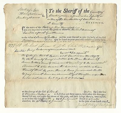 Orig. 18hc American "SHERIFF'S WRIT"/Arrest Warrant New Hampshire 1795
