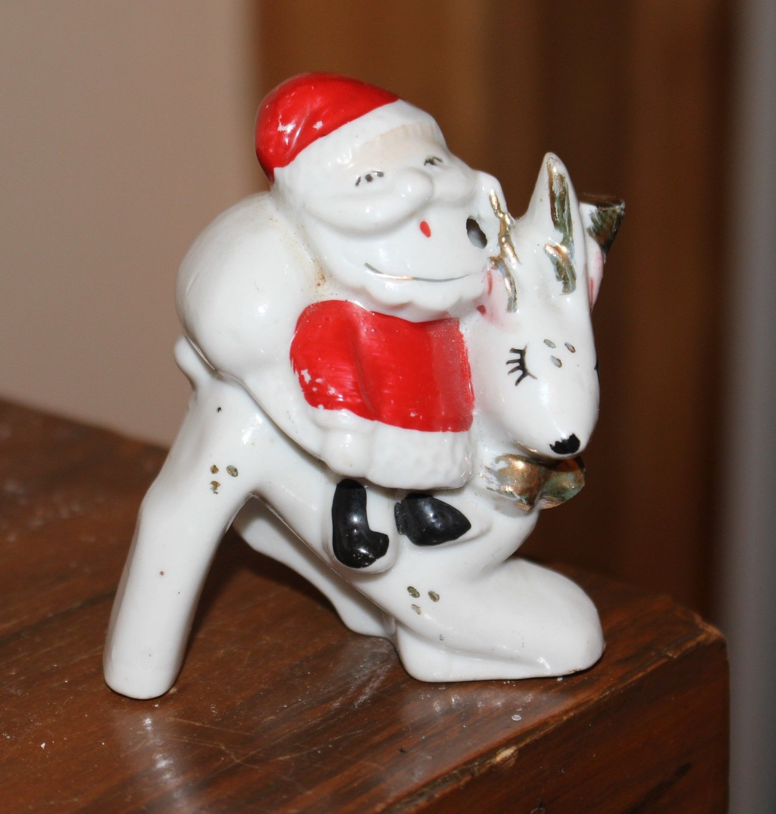 Title (ebay affiliate link): 2nd Santa Claus Riding a stubborn Reindeer. Miniature Ceramic Figure. Japan.