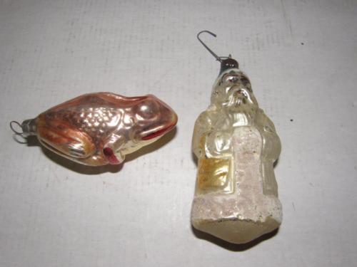 Title (ebay affiliate link): 2 ANTIQUE PLASTIC HAND PAINTED CHRISTMAS TREE ORNAMENTS SANTA CLAUSE & FROG