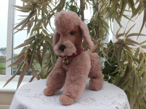Title (ebay affiliate link): Rare Vintage Steiff Apricot Brown Toy Snobby Poodle Dog Silver Ear Button Collar