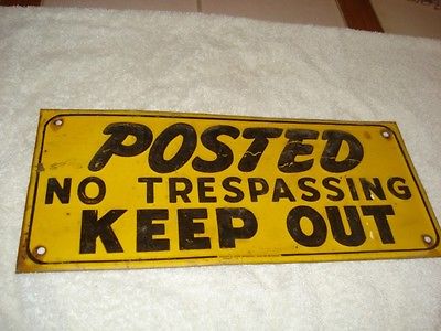 VINTAGE METAL NO TRESPASSING SIGN .