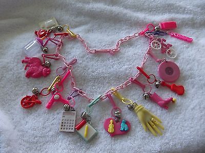 1980'S BELL CLIP PLASTIC CHARM NECKLACE WITH 16 RETRO 80'S CHARMS!!