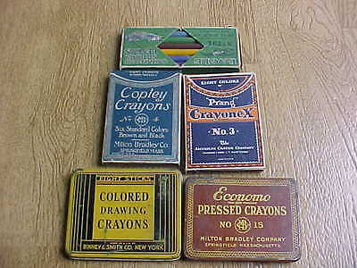 5 VINTAGE BOXES OF CRAYONS 2 TIN MILTON BRADLEY CO.