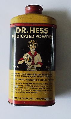 Title (ebay affiliate link): VINTAGE DR. HESS HEALING POWDER 4oz ADVERTISING TIN Ashland, Ohio