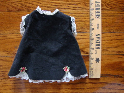 Antique Vintage Doll clothes Blk Velvet Dress Roses