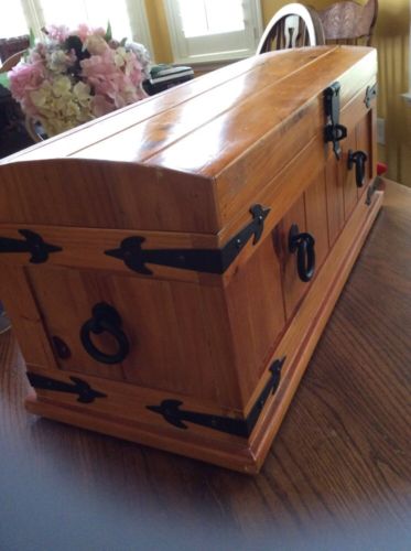 Title (ebay affiliate link): LARGE WOODEN TREASURE CHEST TYPE BOX, 23 x 10 x 10, dome top, metal pieces,