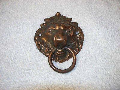ANTIQUE LION HEAD RING PULL PRESSED BRASS ARCHITECTURAL FURNITURE CABINETS DECOR