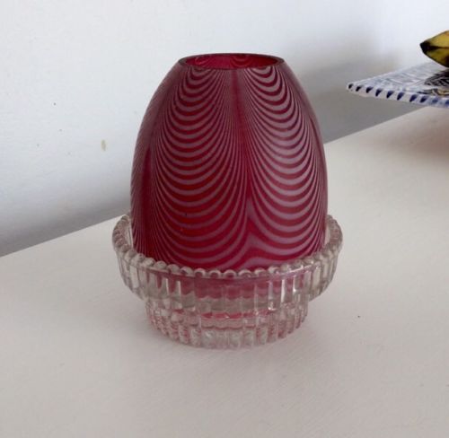Title (ebay affiliate link): Victorian Clarkes Nailsea Moire Glass Fairy Night Light Trade Mark cup Cranberry
