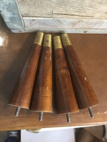 Title (ebay affiliate link): Set of 4 Vintage Wood FEET LEGS 7" Tapered Wood w/ Brass ~ mid century Danish