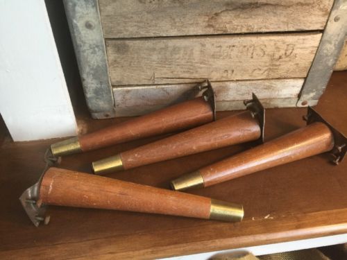 Title (ebay affiliate link): Set of 4 Vintage Wood FEET LEGS 9" Tapered Wood w/ Brass ~ mid century danish