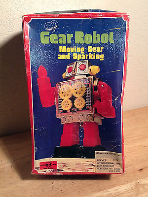 Vintage SH Japan Wind Up Gear Robot Moving Gear and Sparking Robot Made in Japan