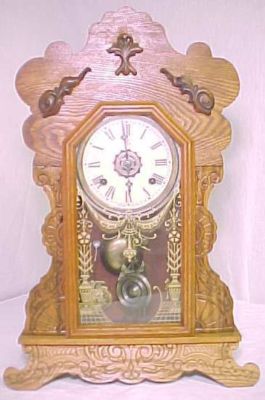 ANTIQUE WATERBURY FANCY OAK GINGERBREAD MANTEL CLOCK