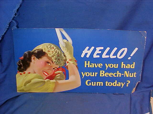 Title (ebay affiliate link): 1940s BEECHNUT Chewing GUM Advertising SIGN from BUS-SUBWAY w GIRL Image