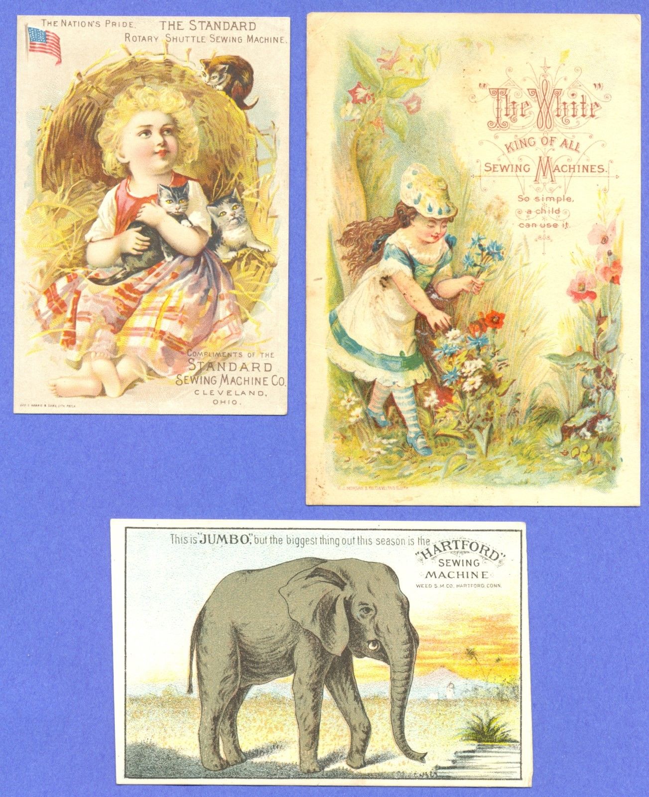 Vintage Victorian Trade Card Lot of 3 - Sewing Machine Companies
