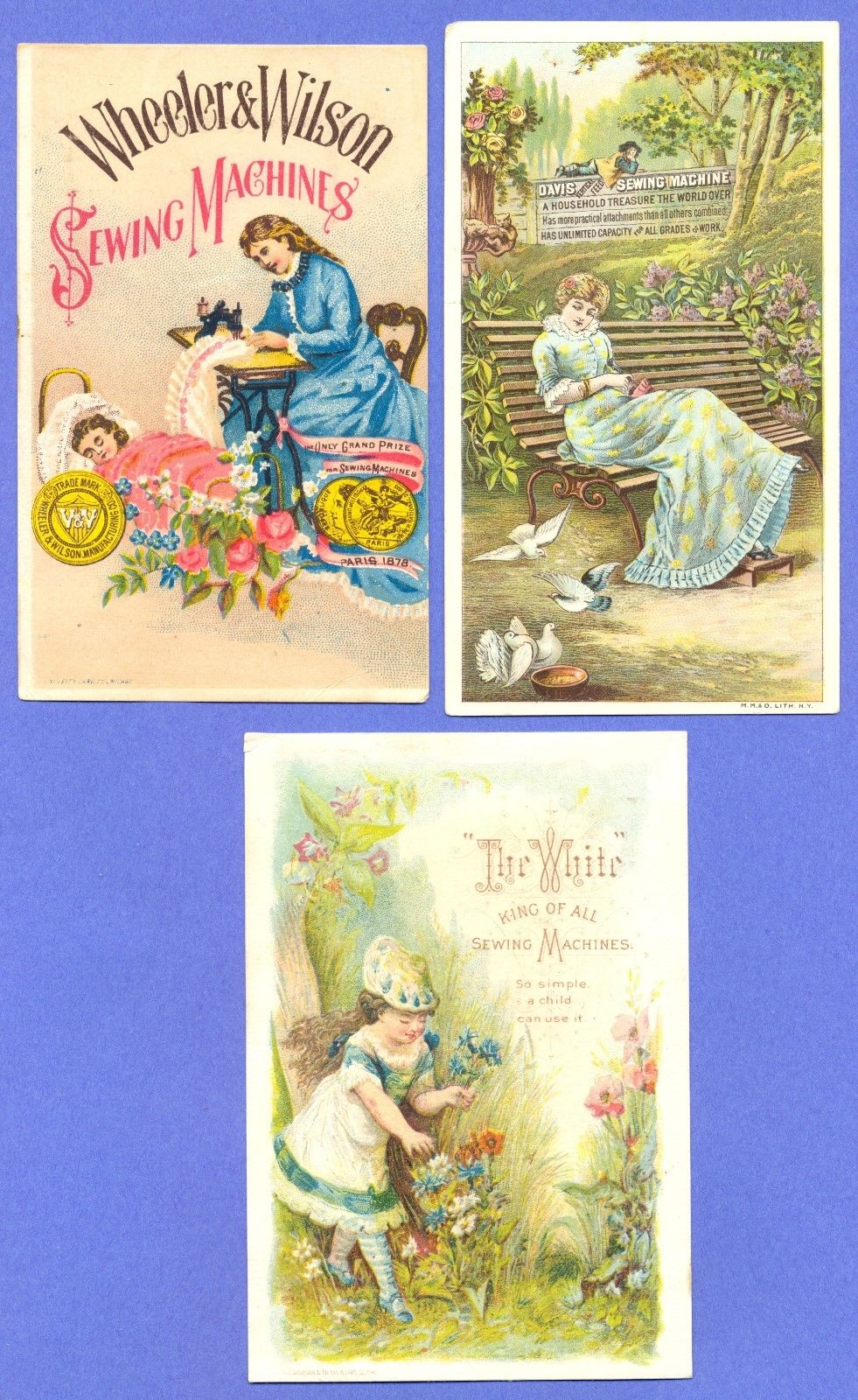 Vintage Victorian Trade Card Lot of 3 - Sewing Machine Companies