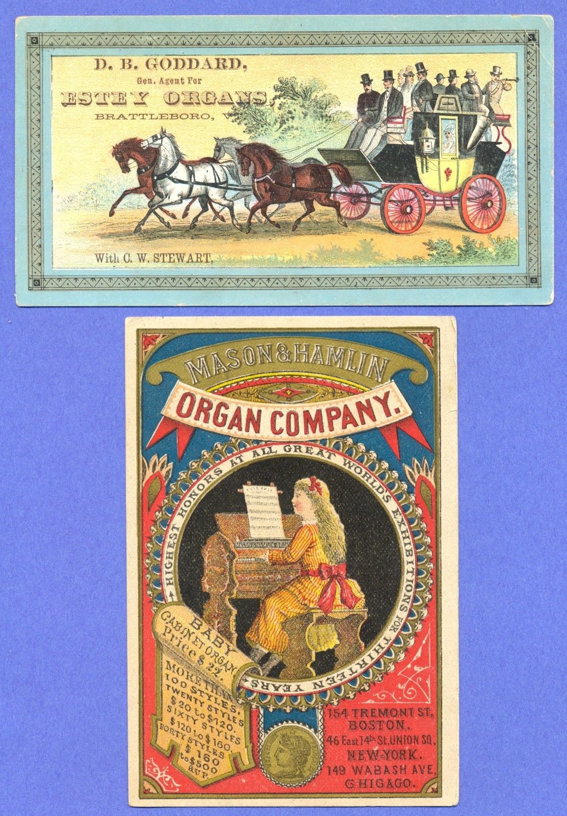 Vintage Victorian Trade Card Lot of 2 - Organ Companies