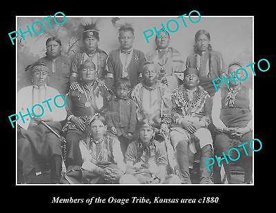 OLD LARGE HISTORIC PHOTO OF INDIAN OSAGE TRIBE, GROUP PHOTO c1880, KANSAS AREA
