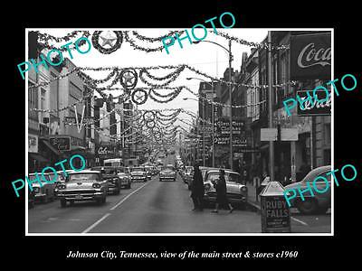 OLD LARGE HISTORIC PHOTO OF JOHNSON CITY TENNESSEE, THE MAIN St & STORES c1960