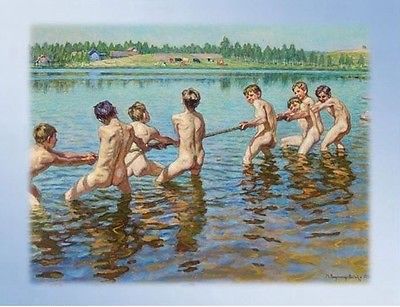 Title (ebay affiliate link): modern russian art postcard Bogdanov-Belsky "Tug of war" - naked boy