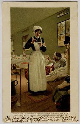 Antique c1910 litho pc - Red Cross Nurse gives medicine to patient by A. ROESLER