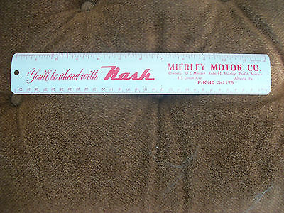 1950's NASH ADVERTISING METAL RULER-MIERLEY MOTOR CO., ALTOONA, PA.-NICE!