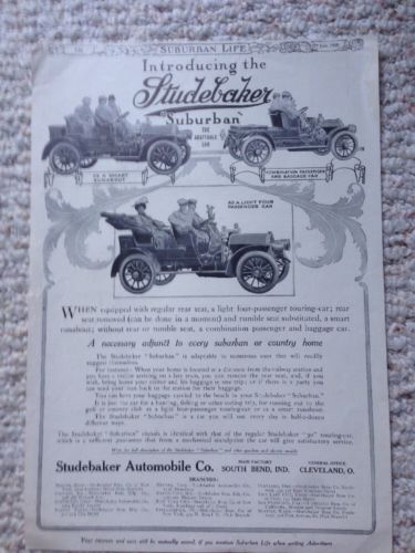1908 STUDEBAKER CAR AUTO MEMORABILIA SUBURBAN RUNABOUT SOUTH BEND INDIANA ART AD