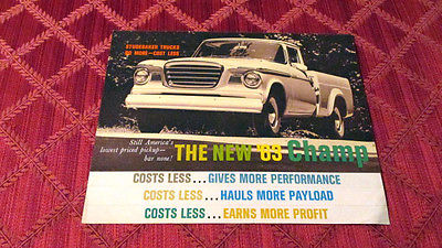 Title (ebay affiliate link): 1963 STUDEBAKER CHAMP PICKUP TRUCK SALES BROCHURE