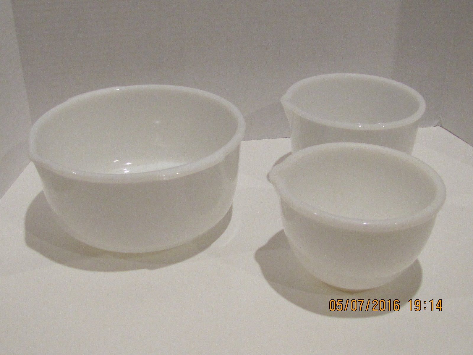 Title (ebay affiliate link): SET OF 3 VINTAGE SUNBEAM MILKGLASS MIXMASTER GLASSBAKE MIXING BOWLS