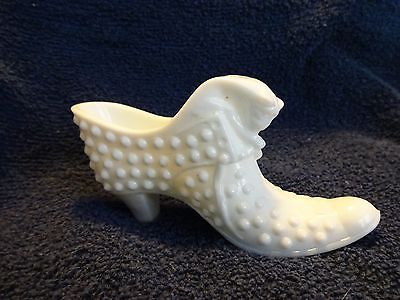 Vintage Fenton Milk Glass Hobnail Slipper Shoe with Cat 92T