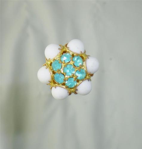 MILK GLASS CABACHON AND AMETHYST RHINESTONE HATPIN