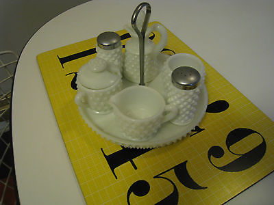 Vintage Fenton Milk Glass Hobnail Condiment Cruet Set, Salt, Pepper