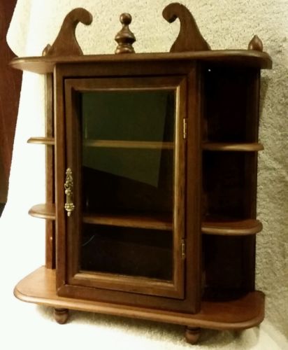 Vtg Wall Hanging Curio Cabinet Shelf Table Top Wood Glass Door Display Case