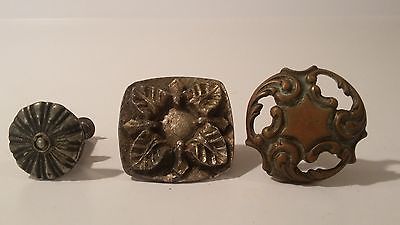 3 ANTIQUE ORNATE METAL AND BRASS HARDWARE KNOBS PULLS FOR FURNITURE " COOL LOT "