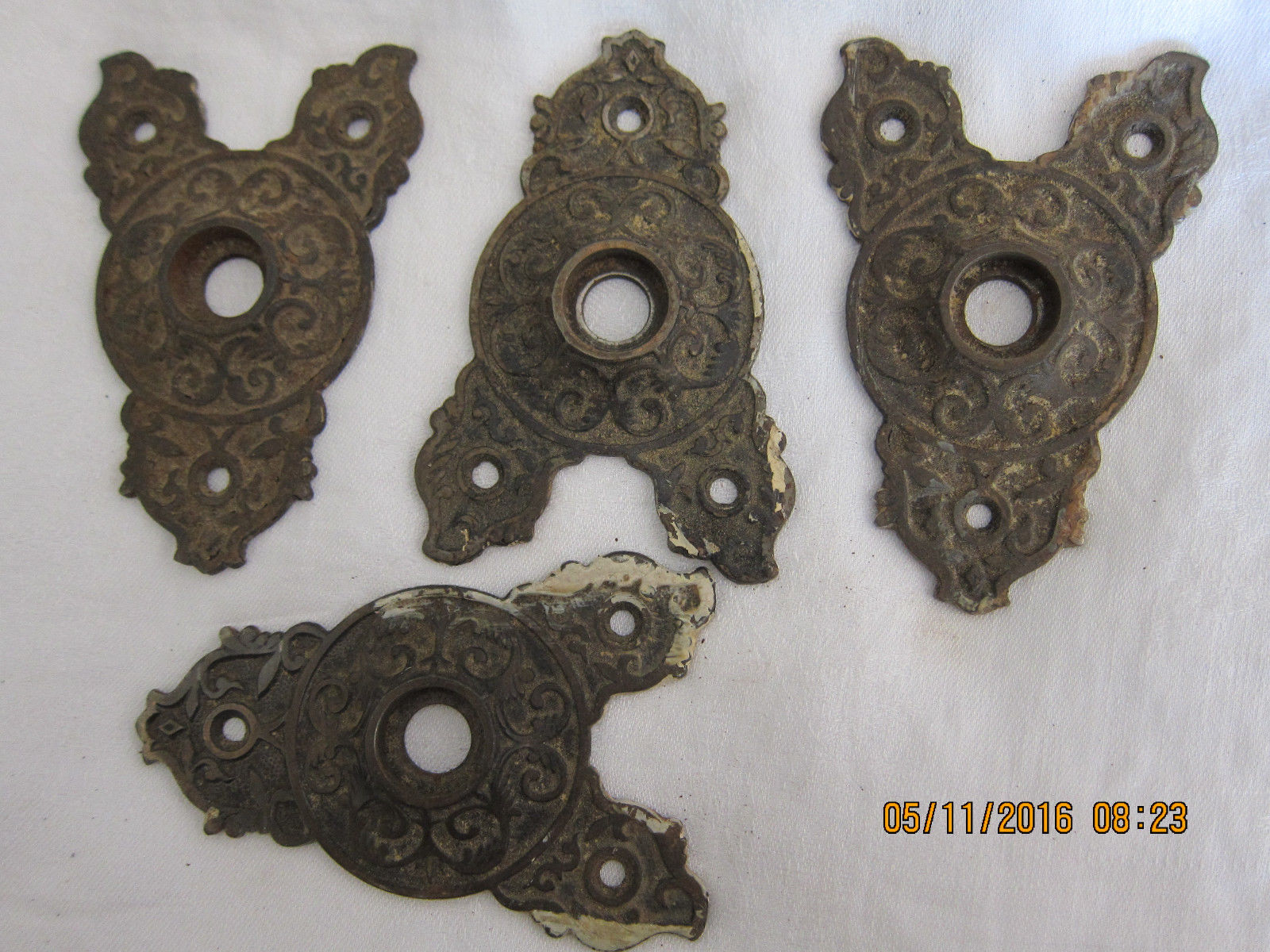 Title (ebay affiliate link): SET OF 4 VINTAGE ANTIQUE VICTORIAN CAST IRON DOOR KNOB ESCUTCHEONS