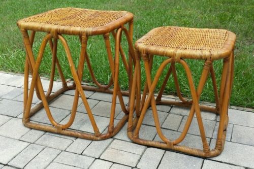 Title (ebay affiliate link): 2 Vintage MID CENTURY TIKI Stacking Nesting Bamboo Plant STAND Lamp SIDETable